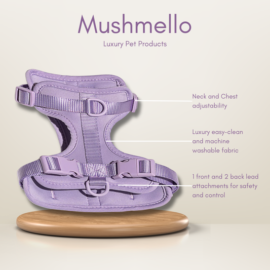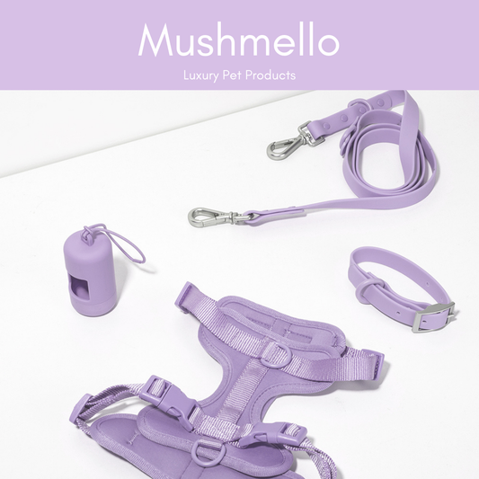 Mushmello Tough Waterproof Harness with Collar and Leash Set - Purple