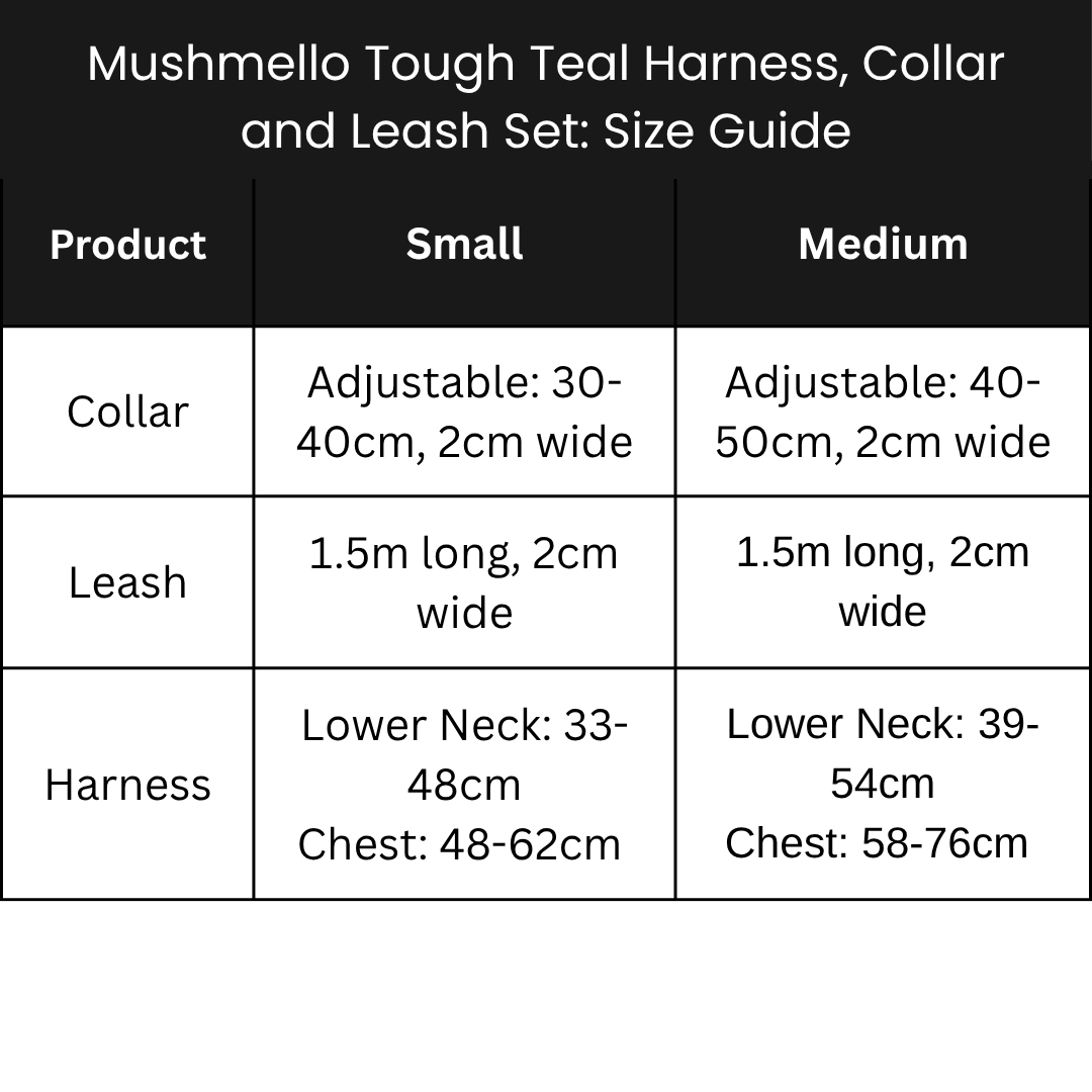 Mushmello Tough Waterproof Harness, Collar and Leash - Teal