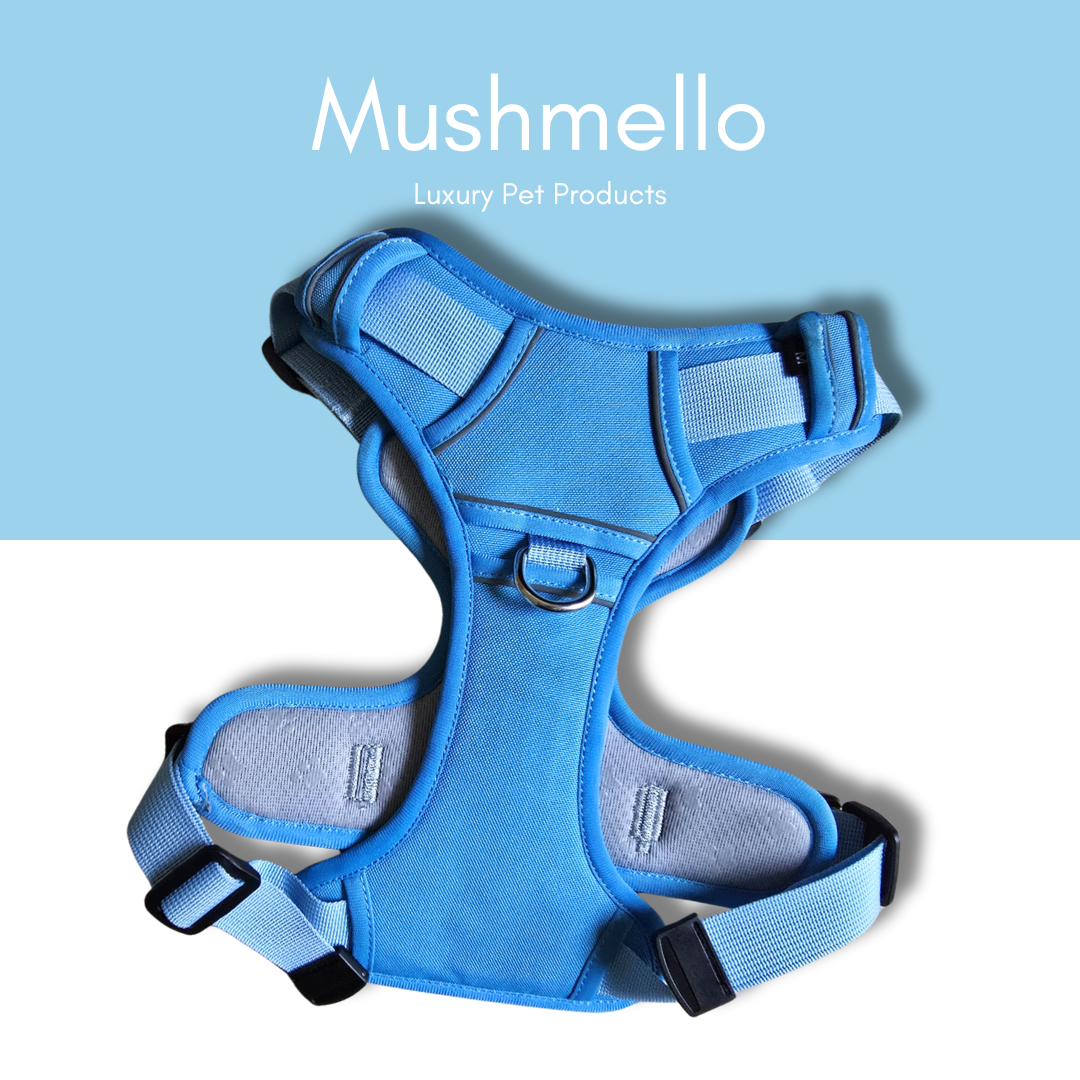 Non-Slip, Padded, Reflective Harness & Bungee Leash Set – Light Blue