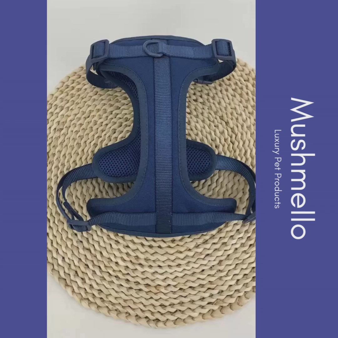 Mushmello Secure Waterproof Harness with Collar and Leash Set - Navy Blue